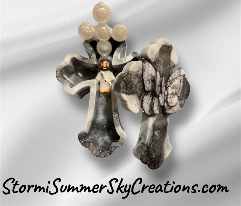 Black and White Prayer/Trinket Box. Comes with a White Cross also handmade and a little Jesus.