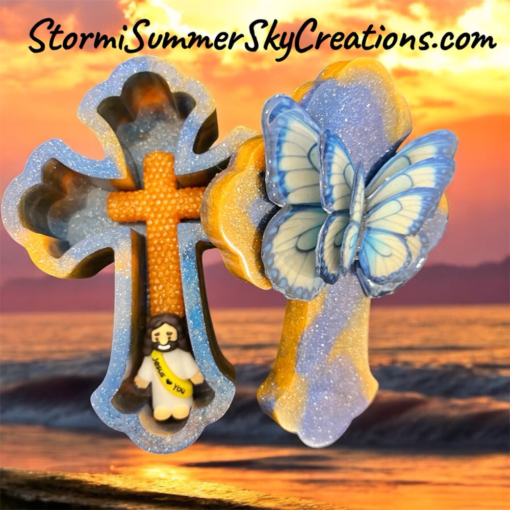 Blue/Orange Marbled Cross Prayer/Trinket Box