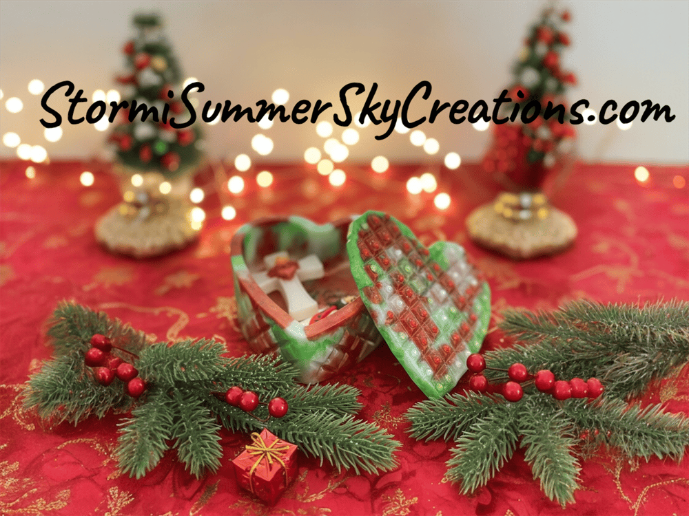 Heart shaped Christmas colored marbled Prayer/Trinket Box
