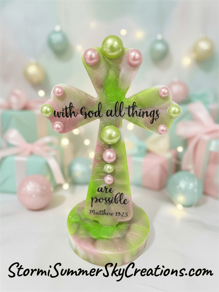 Standing Green & Pink Marbled Cross