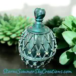 Teal and Silver Jar, comes with a little Jesus and cross inside.